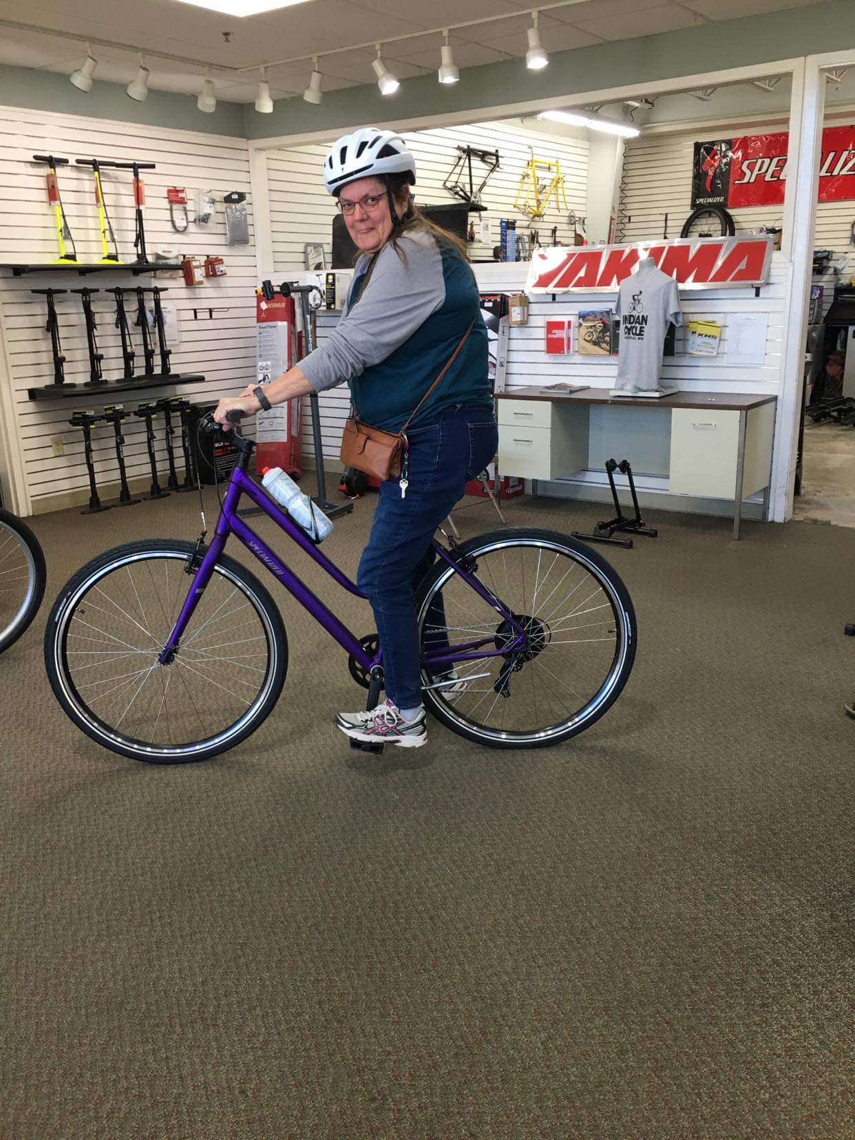 Two wheels. My new purple bicycle. I didn’t think I was up to a 2 mile ride home and it didn’t fit in my car, so it was delivered this afternoon. There was just enough sun left that I was able to ride over to Ruby’s. She pulled her tricycle out and we rode around the cul-de-sac. Our plan is to get out and ride at lunch during the week.
